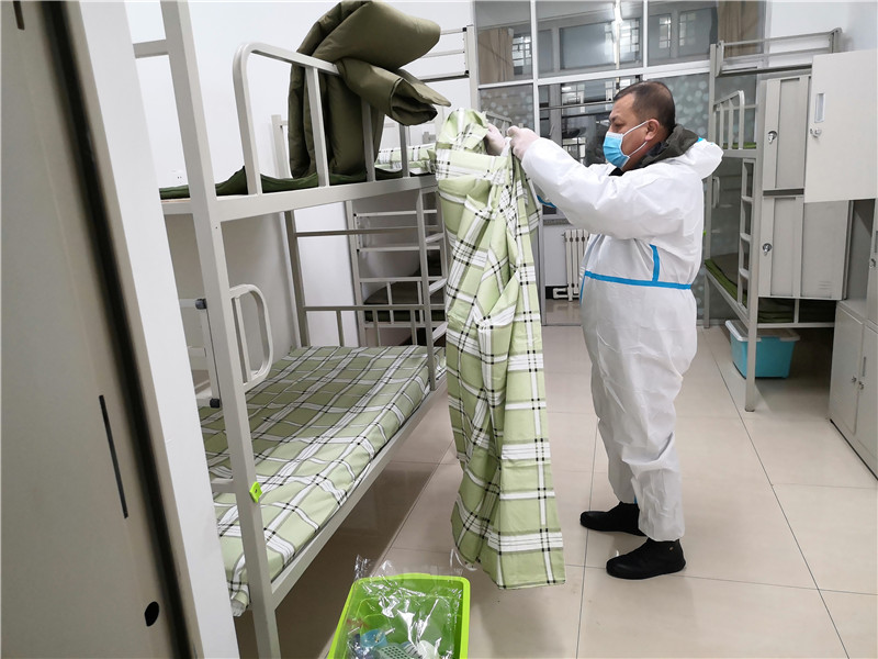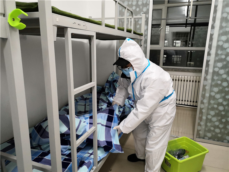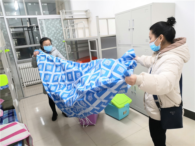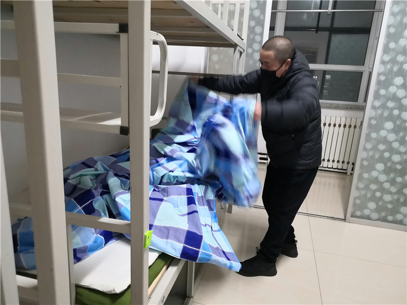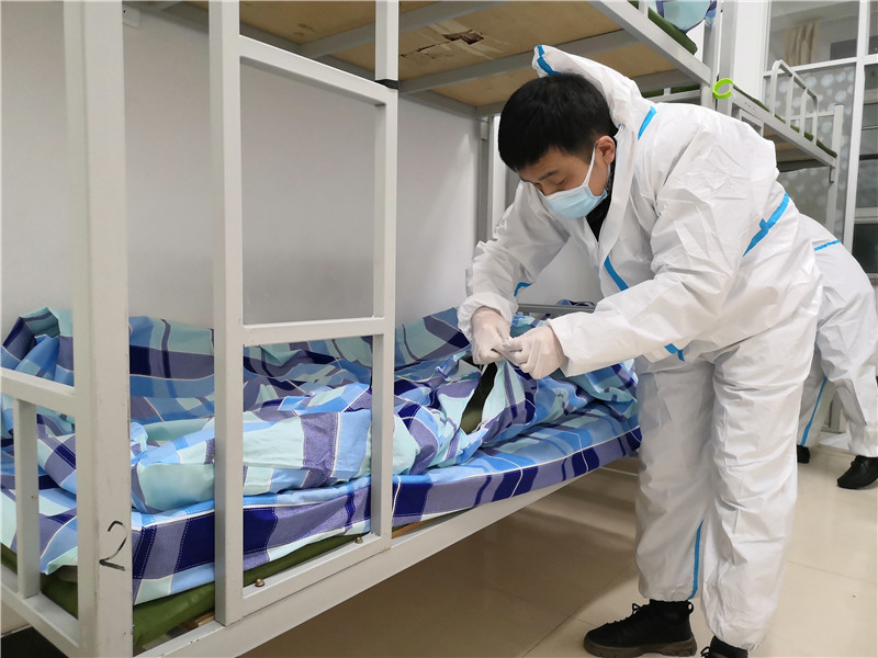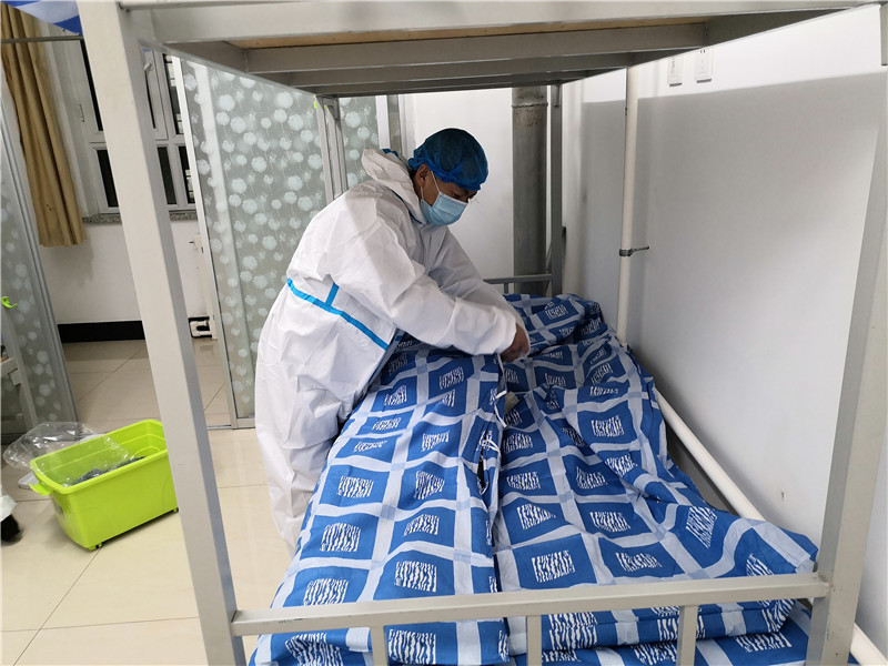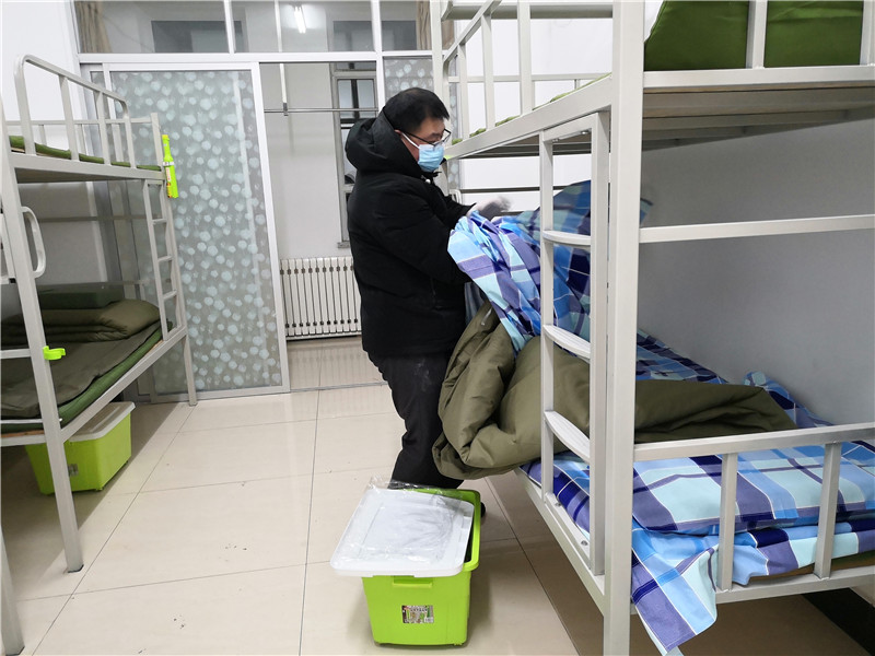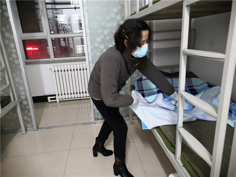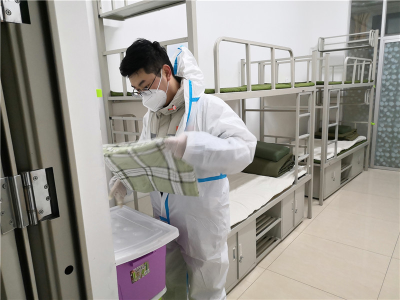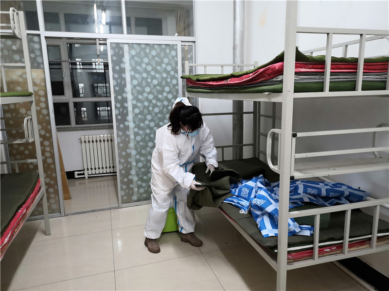 五点十五分,志愿者们纷纷出发。六点整,大家提前到达指定地点——第二公寓。5个楼层楼,近120个房间,360张床铺,八点五十分全部整理完成。此时,志愿者们已腰酸背痛,但看着大家的共同努力的成果,脸上都露出了欣慰的笑容。被子方方正正,床铺干干净净,房间清清爽爽,为未来入驻的隔离人员创造了一个良好的居住环境。