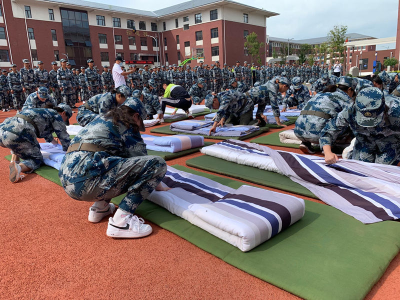 在军事科目汇报展示中,同学们整齐的队伍,威武的军姿,昂扬的斗志,响亮的口号,整齐的内务展示着这一周的训练成果,标志着本次军训的圆满成功。